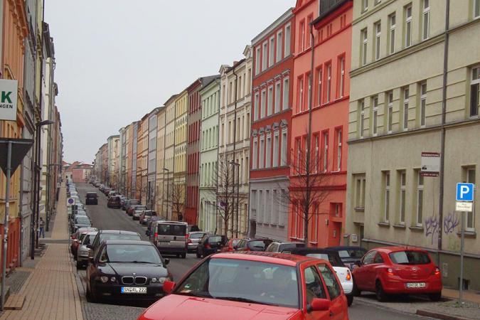 Ein bisschen Farbe für den trüben Tag. Die bunteste Straße von Schwerin. Die Fritz-Reuter-Straße.